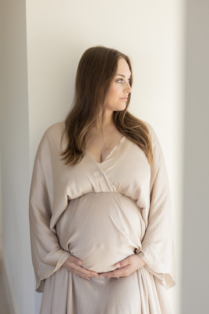 Photographing her wasn’t just about capturing beautiful maternity images – it was about documenting this particular chapter in her story as a mother of three, as a creative professional, as a woman embracing all the changes and beauty that come with pregnancy.